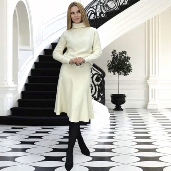 Das Set, bestehend aus einem Basissweater und einem Strickrock in A-Linien-Silhouette, ist eine stilvolle und vielseitige Wahl für bequeme und elegante Outfits. Der Pullover ist aus weichem Material gefertigt, das Wärme und Gemütlichkeit bietet und sich mühelos mit anderen Kleidungsstücken kombinieren lässt. Der Strickrock in A-Linien-Silhouette schafft eine feminine und leichte Silhouette, betont die Taille und kaschiert die Hüften. Dieses Set eignet sich perfekt für den Alltag, Spaziergänge oder Büro-Outfits und sorgt für einen harmonischen und modischen Look.
