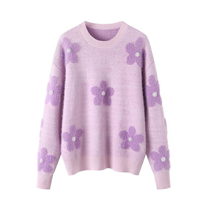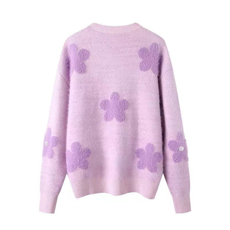 Pullover lila mit flauschigen Gänseblümchen und Strickrock