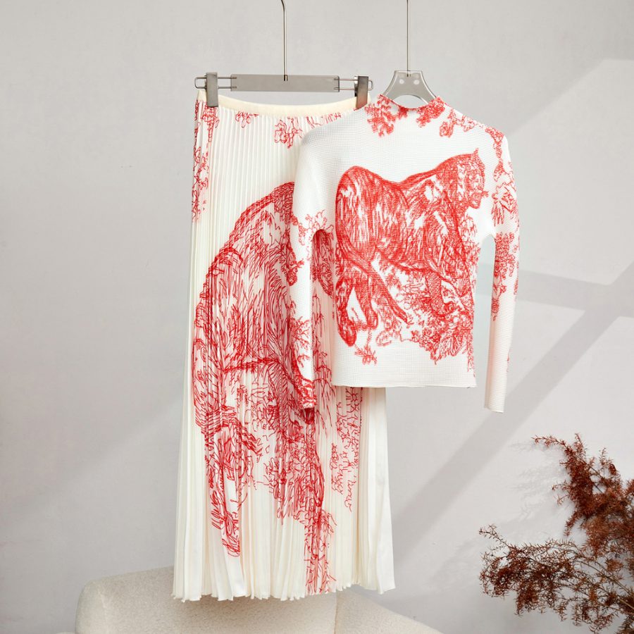Dieser elegante weiße Anzug ist mit einem auffälligen roten Muster verziert, das dem Outfit eine lebendige und stilvolle Note verleiht. Der Kontrast zwischen dem weißen Grundton und dem roten Muster schafft einen besonderen visuellen Akzent und verleiht dem Anzug einen modernen Look. Der Anzug besteht aus hochwertigem, angenehm zu tragendem Material, das für optimalen Komfort sorgt. Ideal für besondere Anlässe oder für ein modisches Statement im Alltag, lässt sich dieser Anzug sowohl elegant als auch leger kombinieren.