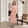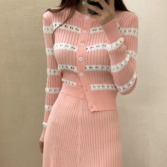 Kostüm mit durchbrochenem Strickmuster, rosa und weißem Streifen