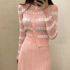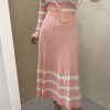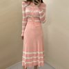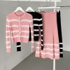 Der Anzug mit durchbrochenem Strickmuster in Rosa und weißen Streifen ist eine stilvolle und raffinierte Kombination, die Leichtigkeit und Eleganz in den Look bringt. Das durchbrochene Muster verleiht dem Stoff Luftigkeit, während die Kombination aus Rosa und Weiß einen weichen und angenehmen visuellen Effekt erzeugt. Dieser Anzug eignet sich perfekt für den Alltag, geschäftliche Treffen oder leichte Sommeranlässe und betont Weiblichkeit und Eleganz.