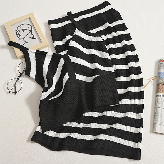 Strickanzug mit schwarz-weißen Streifen
