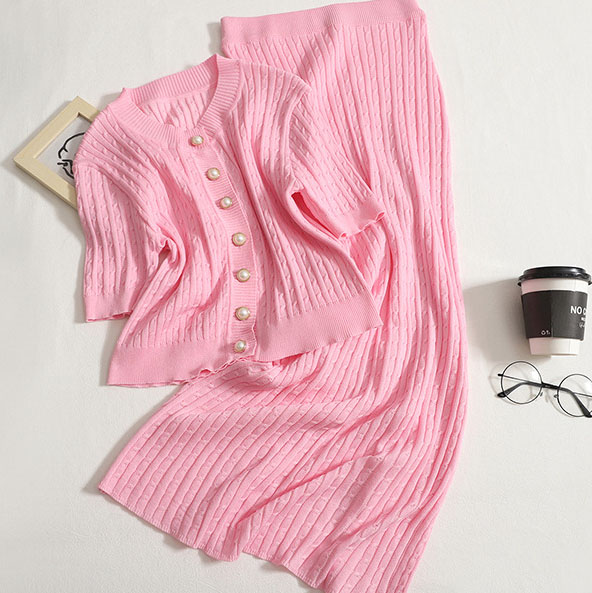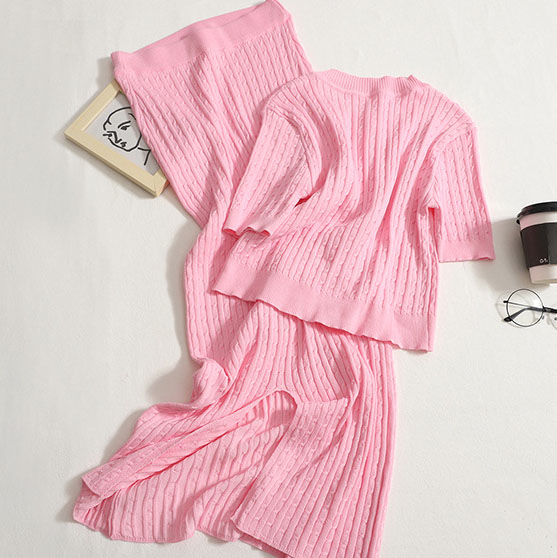 Dieser stilvolle Strickanzug in Rosa kombiniert Komfort mit Eleganz. Der weiche und angenehme Stoff schmiegt sich perfekt an den Körper und sorgt für Bewegungsfreiheit. Der rosafarbene Ton verleiht dem Look Frische und Weiblichkeit, während der bequeme Schnitt ihn zur idealen Wahl für den Alltag, Spaziergänge oder Treffen mit Freunden macht. Dieser Anzug wird ein unverzichtbares Element in Ihrer Garderobe sein.