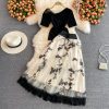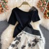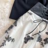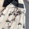Dieses Kostüm besteht aus einer eleganten schwarzen Bluse und einem Rock mit einem zarten Schmetterlingsmuster. Die Bluse mit einem schlichten Schnitt verleiht dem Look Strenge und Raffinesse, während der Rock mit dem raffinierten Schmetterlingsdesign Leichtigkeit und Verspieltheit hinzufügt. Dieses Set ist ideal, um einen femininen und stilvollen Look sowohl für das Büro als auch für abendliche Spaziergänge oder Treffen mit Freunden zu kreieren.