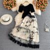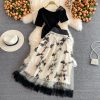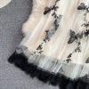 Kostüm mit schwarzer Bluse und Rock mit Schmetterlingen