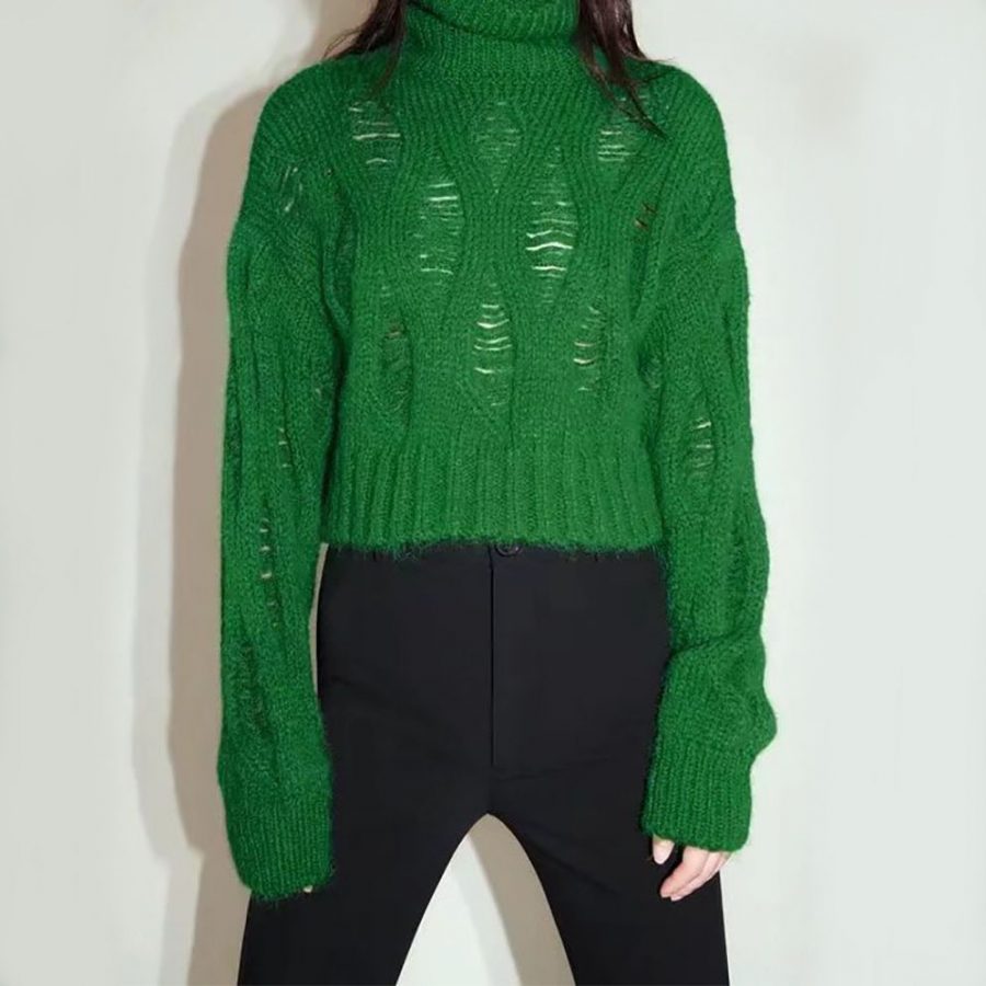 Der kurze Pullover in grüner Farbe ist ein stilvolles und vielseitiges Kleidungsstück, das sich für verschiedene Outfits eignet. Der Pullover ist aus weichem Material gefertigt und bietet Komfort und Wärme. Durch die kurze Länge lässt er sich perfekt mit hochgeschnittenen Hosen oder Röcken kombinieren, betont die Taille und schafft eine ausgewogene Silhouette. Die grüne Farbe verleiht dem Outfit Frische und Lebendigkeit und lässt sich gut mit neutralen oder auffälligen Farbtönen kombinieren. Dieser Pullover eignet sich ideal für den Alltag, Spaziergänge oder sogar für Büro-Outfits.