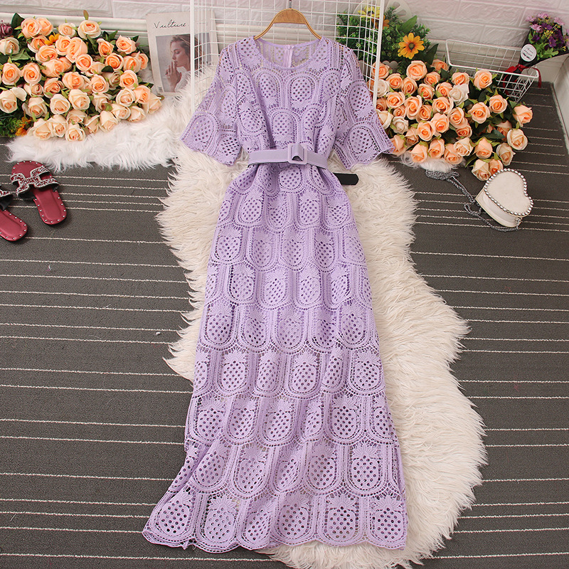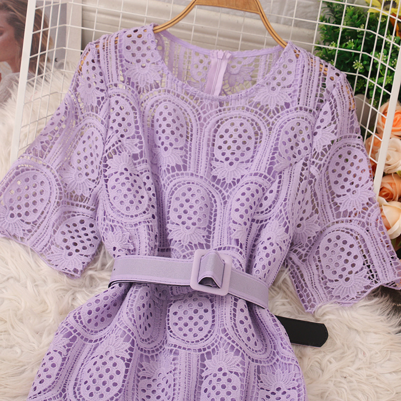Dieses elegante Kleid in lavendelfarbenem Spitzenmaterial verleiht Ihrem Look eine zarte Eleganz. Die feine Spitzenstruktur und der sanfte Pastellton schaffen einen romantischen und femininen Stil. Das Kleid ist perfekt für besondere Anlässe, bei denen Sie raffiniert und edel aussehen möchten.
