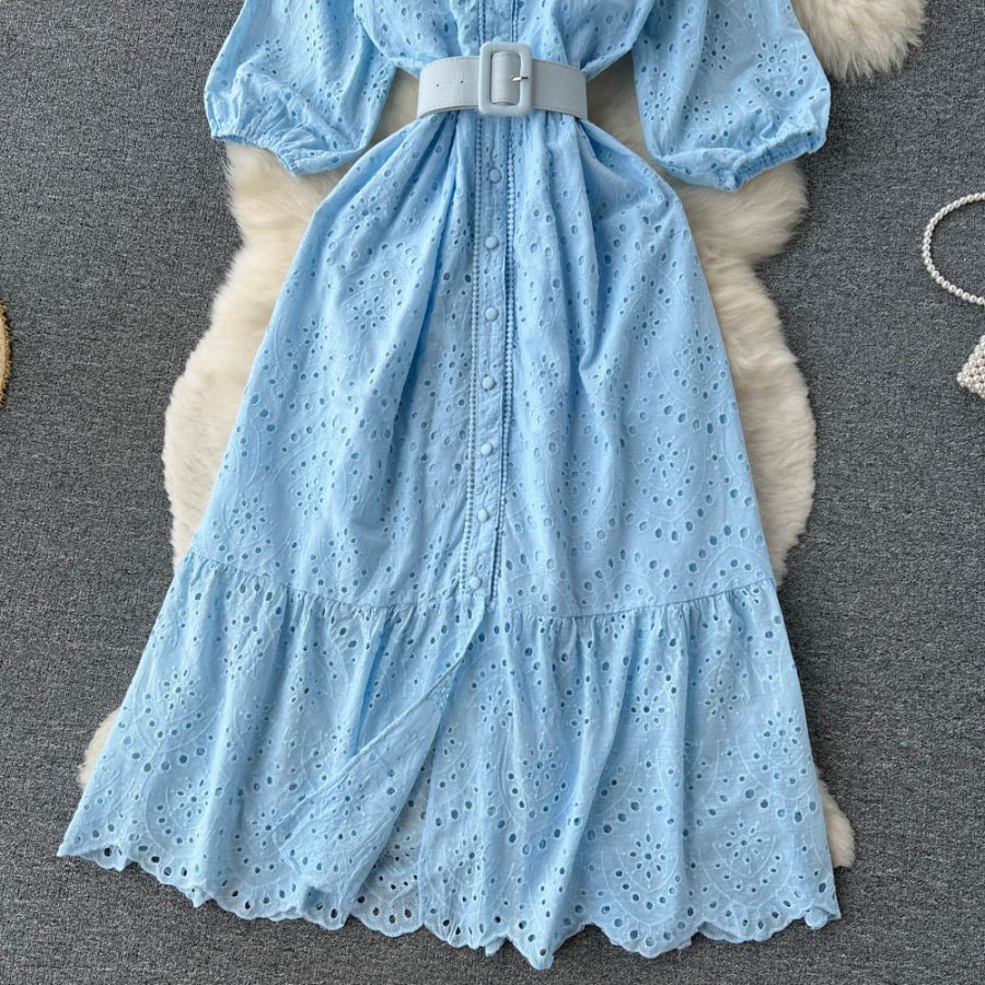 Elegantes Midi-Kleid aus natürlicher Baumwolle mit funktionellen Knöpfen vorne. Das Kleid wird durch einen schönen Gürtel in zartem Flieder ergänzt, der dem Look Raffinesse und Eleganz verleiht. Dieses Kleid ist perfekt für warme Tage und kombiniert Komfort mit Stil.