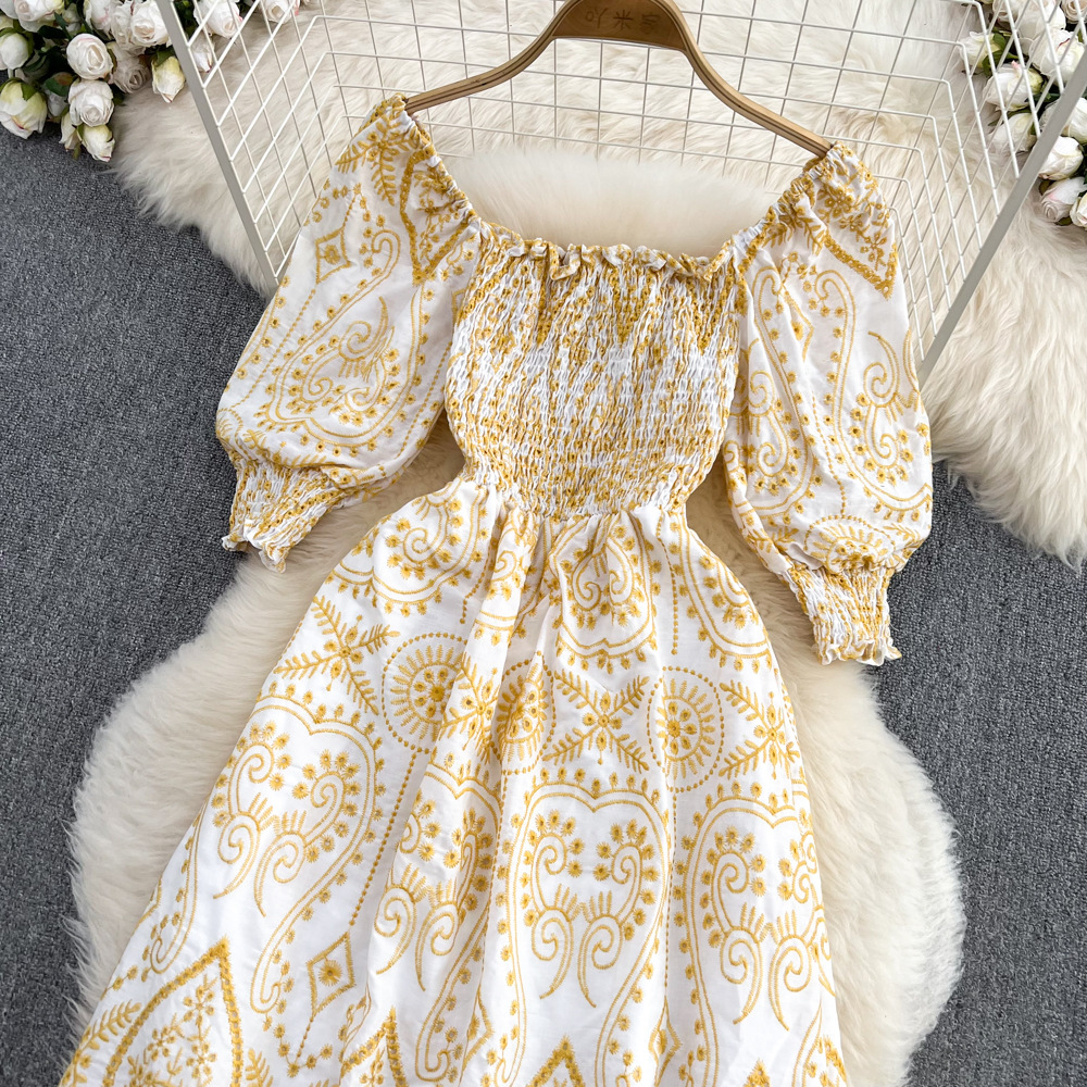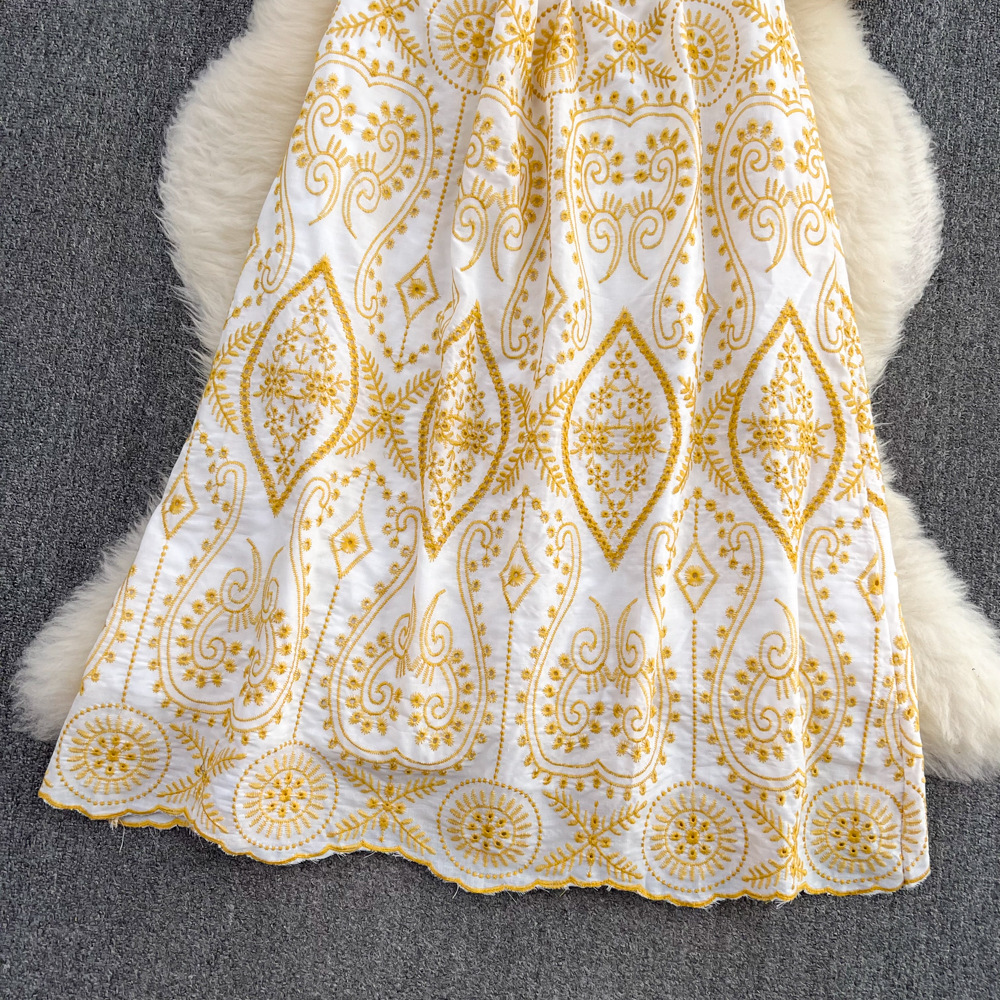 Das Sommerkleid aus Baumwolle mit gelber Stickerei ist ein stilvolles und lebhaftes Kleidungsstück, das perfekt für warme Tage geeignet ist. Der zarte Baumwollstoff sorgt für Komfort und Atmungsaktivität, sodass die Haut bei Hitze atmen kann. Die gelbe Stickerei verleiht dem Kleid Fröhlichkeit und hebt seine Einzigartigkeit hervor. Dieses Kleid eignet sich hervorragend für Spaziergänge, Picknicks oder Sommerfeste und verleiht Ihrem Look eine frische und romantische Note. Mit diesem Kleid werden Sie großartig aussehen und sich in jeder Situation selbstbewusst fühlen.