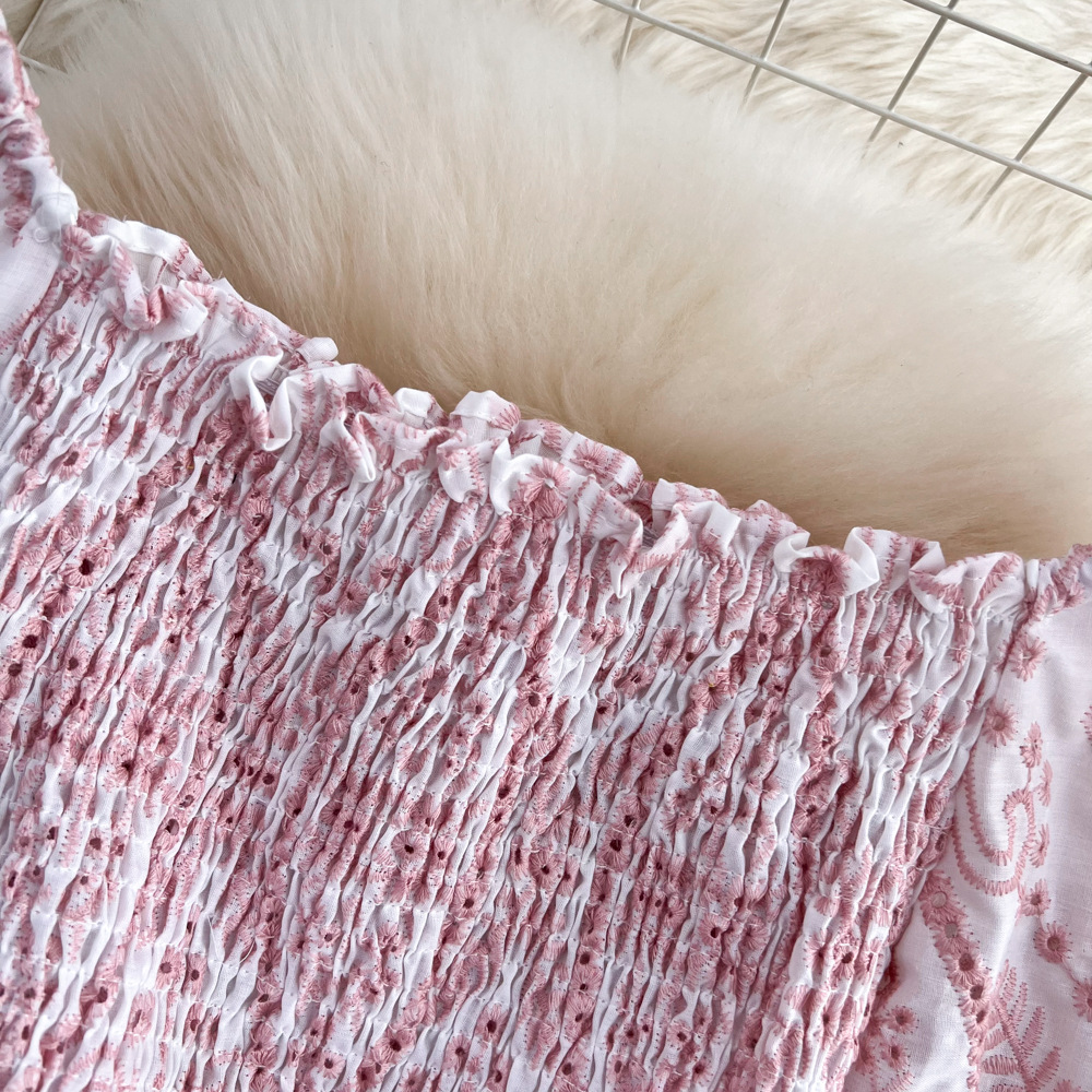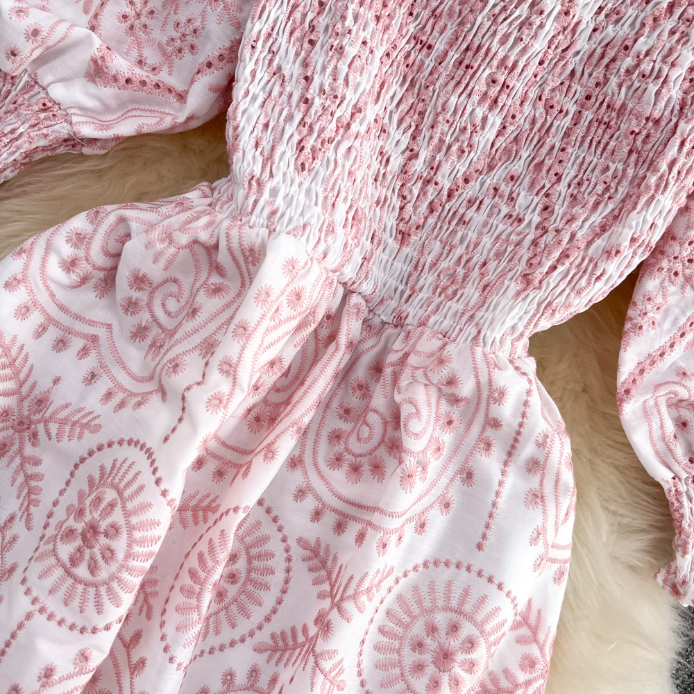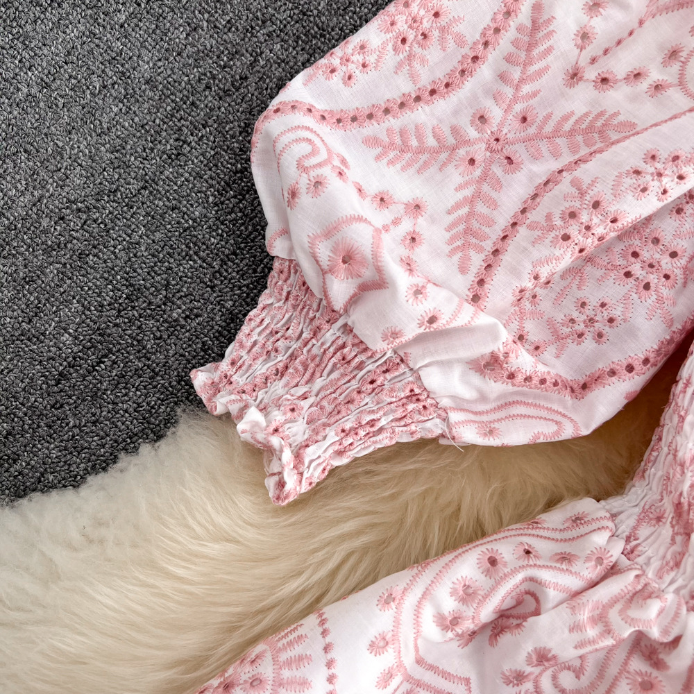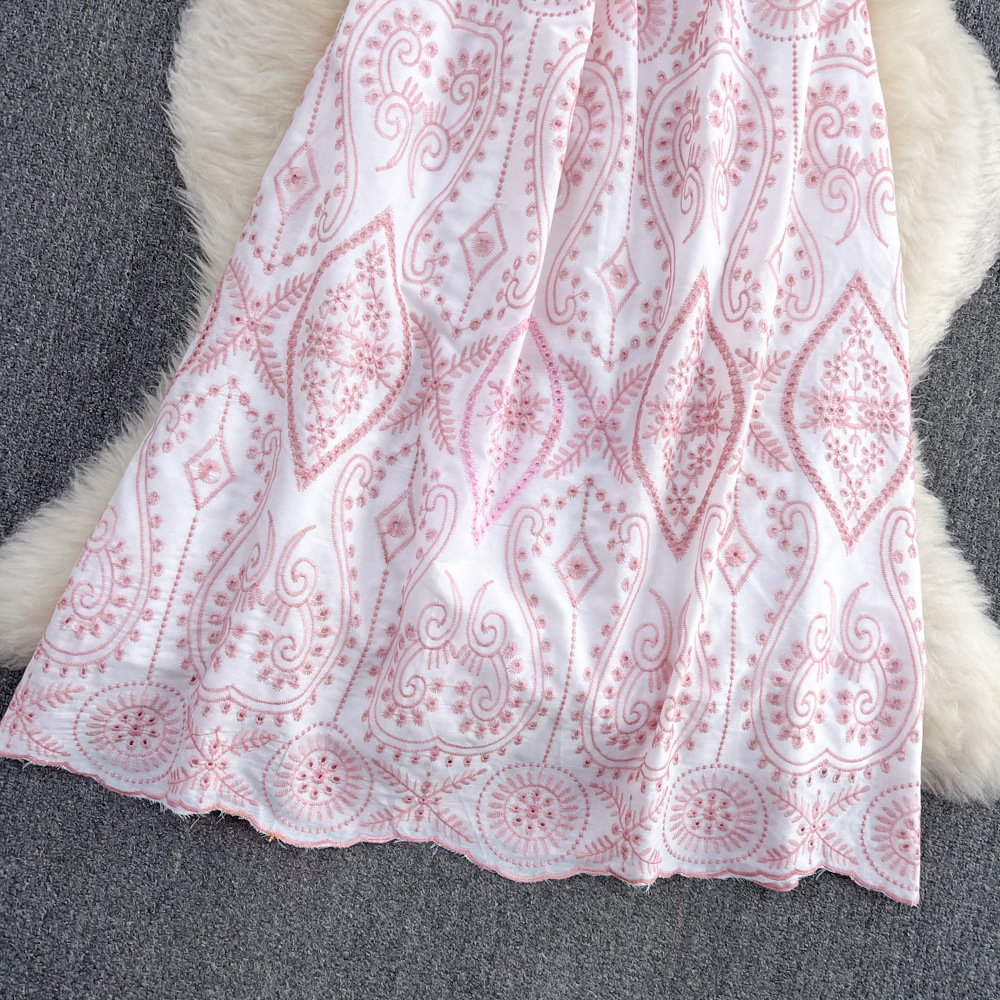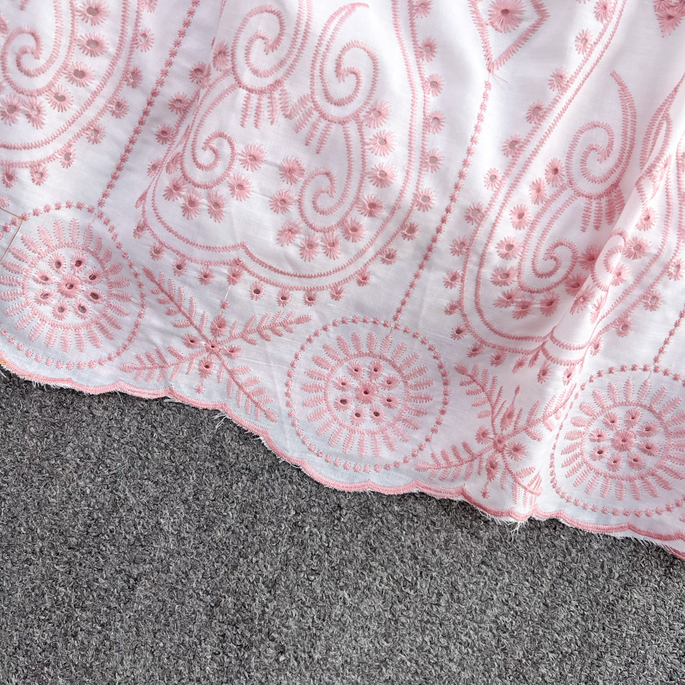 Das sommerliche weiße Kleid aus Baumwolle, bestickt mit rosa Garn, ist die perfekte Wahl für warme Tage. Das zarte Baumwollmaterial sorgt für maximalen Komfort und lässt die Haut atmen, was es zu einer ausgezeichneten Option für heißes Wetter macht. Die rosa Stickerei verleiht dem Kleid lebendige Akzente und schafft einen romantischen, femininen Look. Dieses Kleid eignet sich hervorragend für Stadtspaziergänge, Picknicks oder Sommerpartys und verleiht Ihrem Stil eine Note von Frische und Eleganz. Mit diesem Kleid werden Sie großartig aussehen und sich in jeder Situation selbstbewusst fühlen.