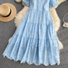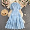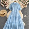 Dieses Kleid aus Baumwolle mit einem Spitzenkragen in Blau ist eine elegante und raffinierte Wahl für jeden Anlass. Der weiche und angenehme Stoff sorgt für Komfort, während der feine Spitzenkragen dem Look Zartheit und Romantik verleiht. Der blaue Farbton bringt Frische und Leichtigkeit und macht das Kleid sowohl für den Alltag als auch für festlichere Anlässe vielseitig einsetzbar.