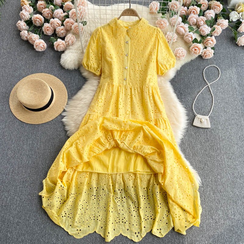 Das sommerliche Midi-Kleid aus Baumwolle in gelber Farbe ist die perfekte Wahl für warme Tage. Die frische und leuchtende Farbe hebt die Stimmung und schafft eine Atmosphäre von Leichtigkeit und Freude. Das Kleid umschmeichelt die Figur und bietet gleichzeitig Komfort und Bewegungsfreiheit. Der Baumwollstoff lässt die Haut atmen und sorgt dafür, dass Sie auch an den heißesten Tagen trocken bleiben. Dieses Kleid eignet sich sowohl für entspannte Spaziergänge als auch für Sommerpartys. Kombinieren Sie es mit leichten Sandalen und Accessoires, um einen stilvollen und lässigen Look zu kreieren.