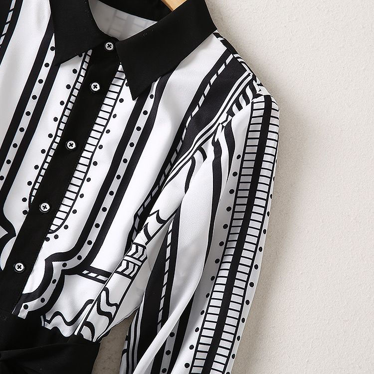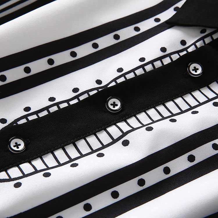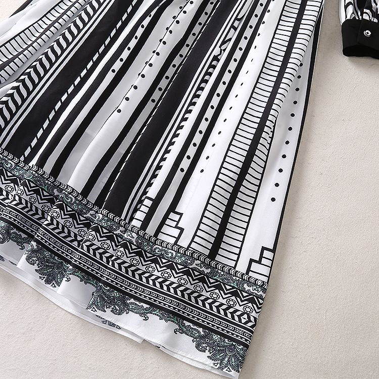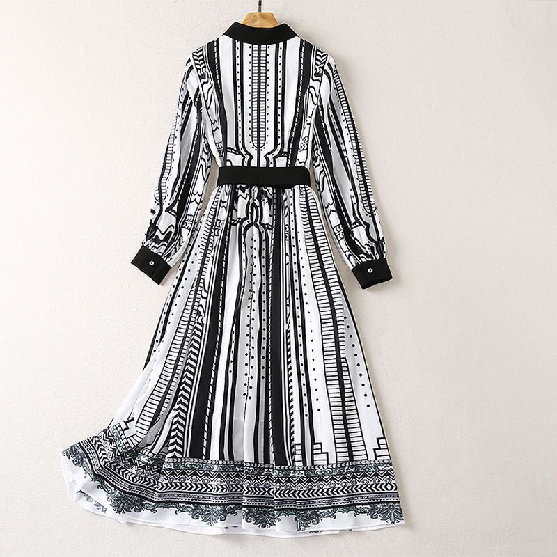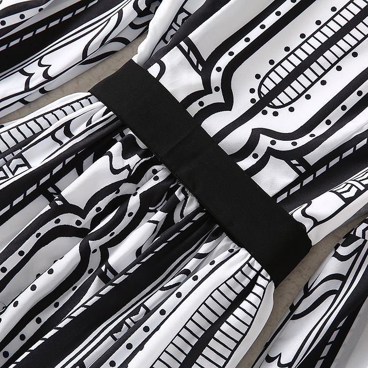 Das Midi-Kleid in Weiß mit schwarzem geometrischem Muster ist ein stilvolles und modernes Kleidungsstück, das sich hervorragend für verschiedene Anlässe eignet. Der auffällige Kontrast zwischen dem weißen Grundton und dem schwarzen Muster schafft einen beeindruckenden visuellen Akzent und hebt Ihre Individualität hervor. Das Kleid hat eine elegante Silhouette, die vorteilhaft an der Figur sitzt und sowohl für Büro- als auch für Abendveranstaltungen geeignet ist. Der leichte Stoff sorgt für angenehmen Tragekomfort, während das geometrische Muster dem Look Aktualität und Raffinesse verleiht. Mit diesem Kleid werden Sie in jeder Situation stilvoll und selbstbewusst auftreten.