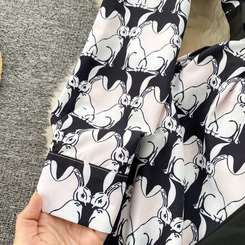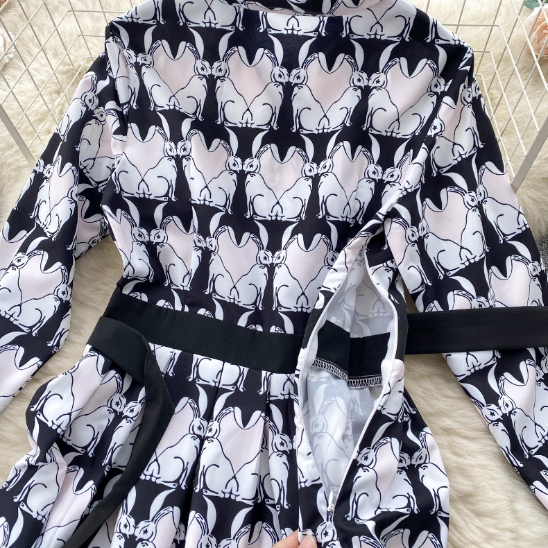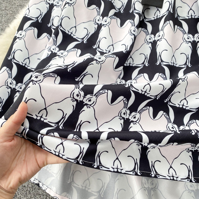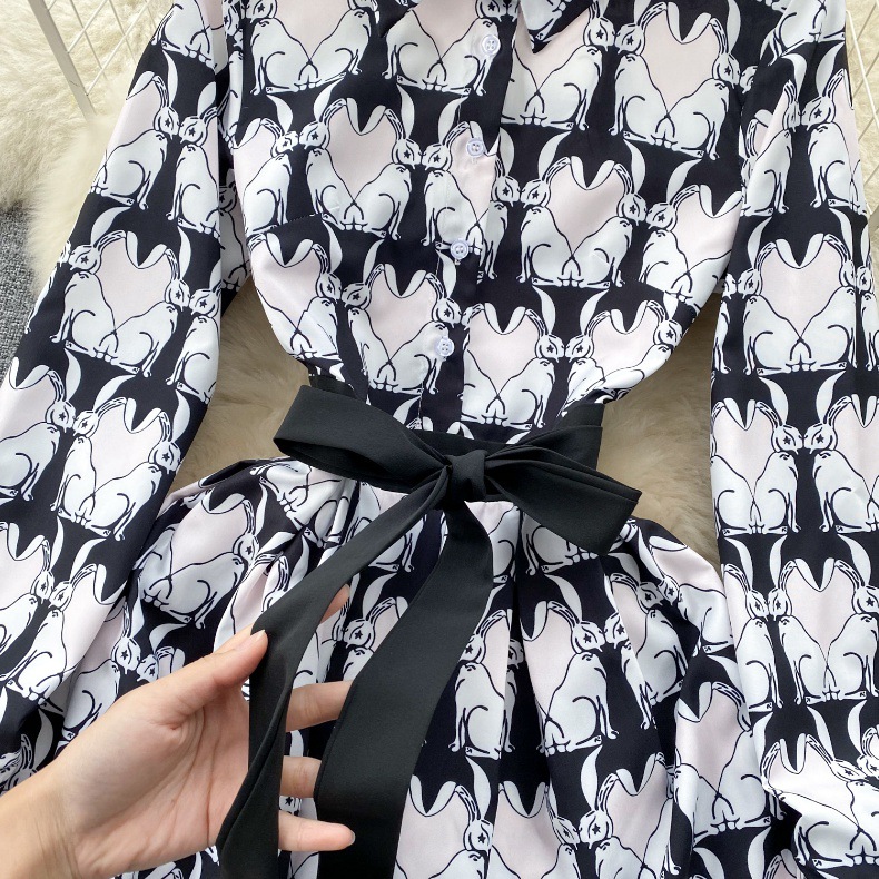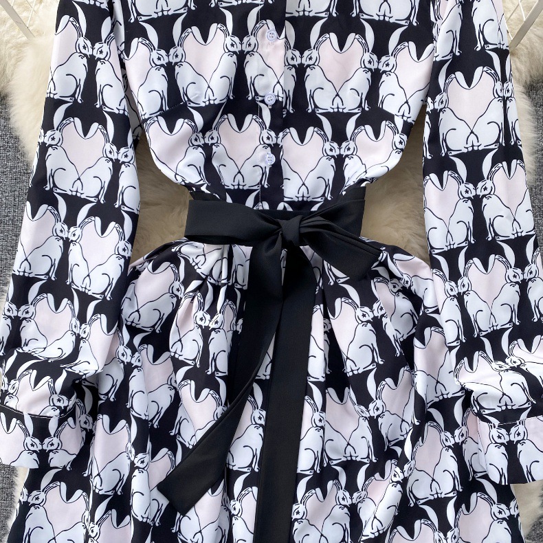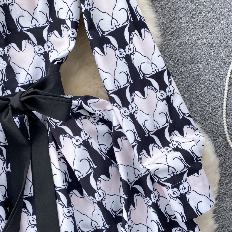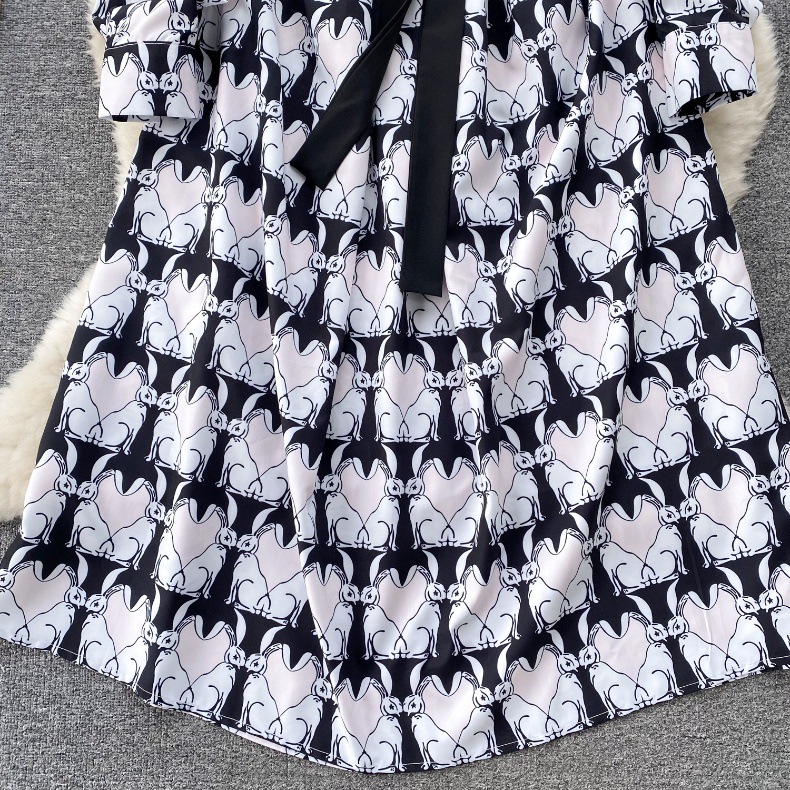 Das Midi-Kleid mit Gürtel im „Hasen“-Druck ist eine originelle und verspielte Wahl für Modebegeisterte. Der auffällige Hase-Druck verleiht dem Kleid Einzigartigkeit und Spaß, während der taillierte Schnitt die Figur betont und eine elegante Silhouette schafft. Dieses Kleid eignet sich hervorragend für sommerliche Spaziergänge, Picknicks oder Freundestreffen und verleiht dem Look Leichtigkeit und Fröhlichkeit.