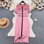 Schreibe die erste Rezension für „Midi-Kleid mit Gürtel im zartrosa Muster.“