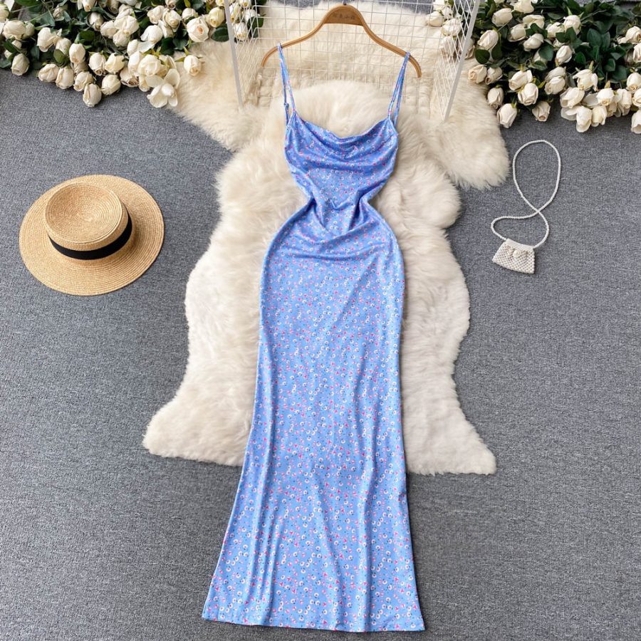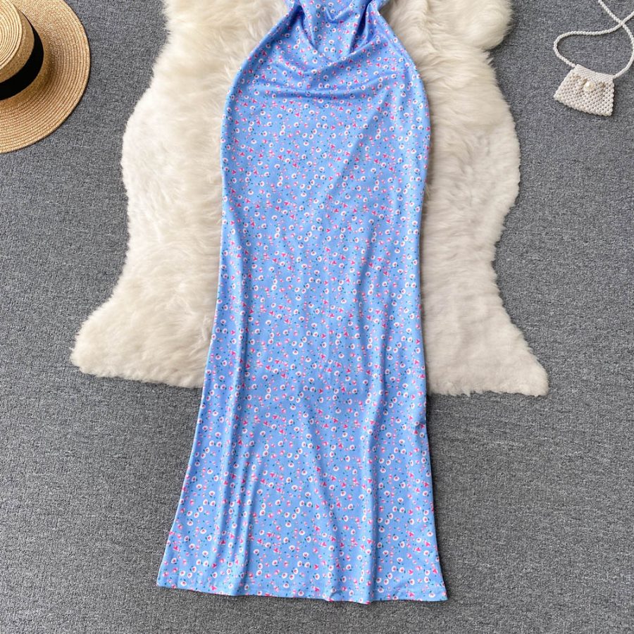 Kleid in Himmelblau mit offener Rückenpartie und Trägern