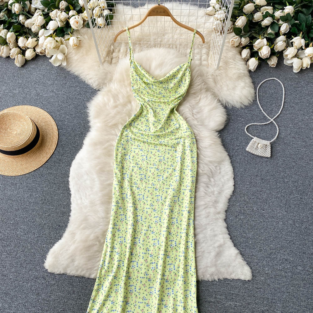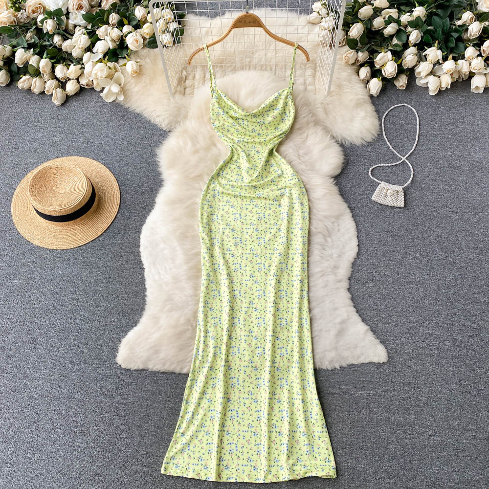 Kleid in grünem Farbton mit offener Rückenpartie und Trägern