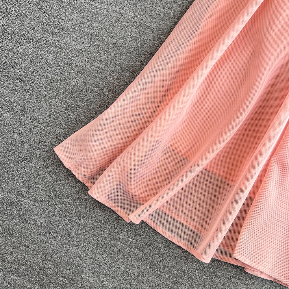Das midi-Kleid in zartem Rosé aus Netz ist die perfekte Wahl für alle, die ihre Individualität und Eleganz betonen möchten. Der leichte und luftige Stoff verleiht dem Look eine gewisse Leichtigkeit, während die filigrane Stickerei an der Taille eine romantische und elegante Note hinzufügt. Dieses Kleid eignet sich hervorragend für besondere Anlässe, sei es ein Abendausgang oder ein gesellschaftliches Event. Es lässt Sie stilvoll und ansprechend erscheinen und betont Ihre besten Eigenschaften. Kombinieren Sie es mit zarten Accessoires und hohen Schuhen, um einen unvergesslichen Look zu kreieren.
