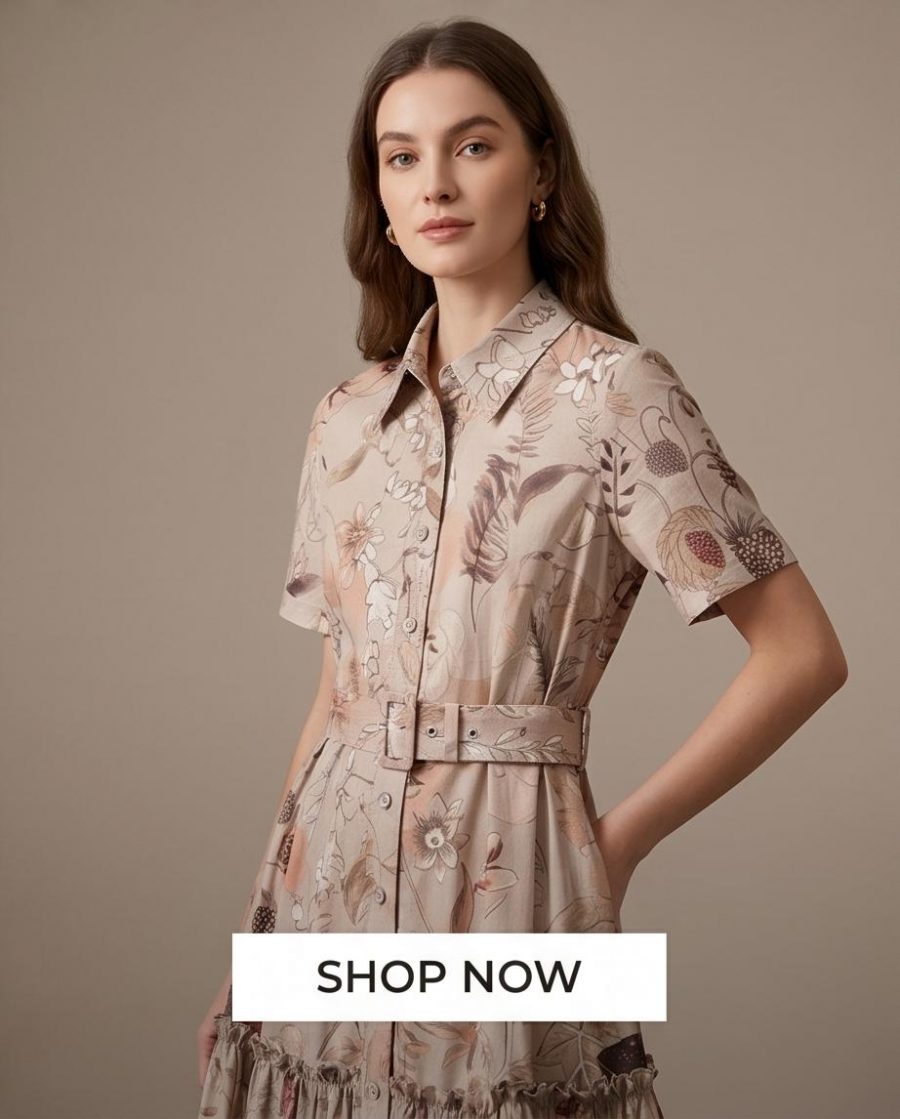 Das Safari-Hemdkleid mit Blumenmuster ist eine stilvolle und leichte Wahl für einen modischen und gemütlichen Look. Der klassische Hemd-Schnitt im Safari-Stil kombiniert sich mit einem lebhaften und zarten Blumenmuster, was es zur idealen Wahl für die warmen Monate macht. Dieses Kleid eignet sich perfekt für Spaziergänge, Ausflüge in die Natur oder städtische Ausflüge und vereint Komfort mit Weiblichkeit.