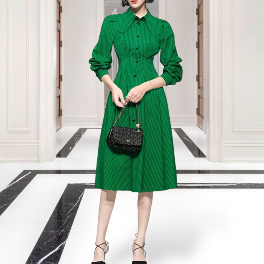 Ein Hemdkleid aus Baumwolle in leuchtendem Grün mit tailliertem Schnitt – die perfekte Kombination aus Stil und Komfort. Leicht und bequem, betont es Ihre Figur und verleiht Ihrem Outfit eine frische Note. Eine ausgezeichnete Wahl für warme Tage, wenn Sie stilvoll aussehen und sich gleichzeitig wohl fühlen möchten.