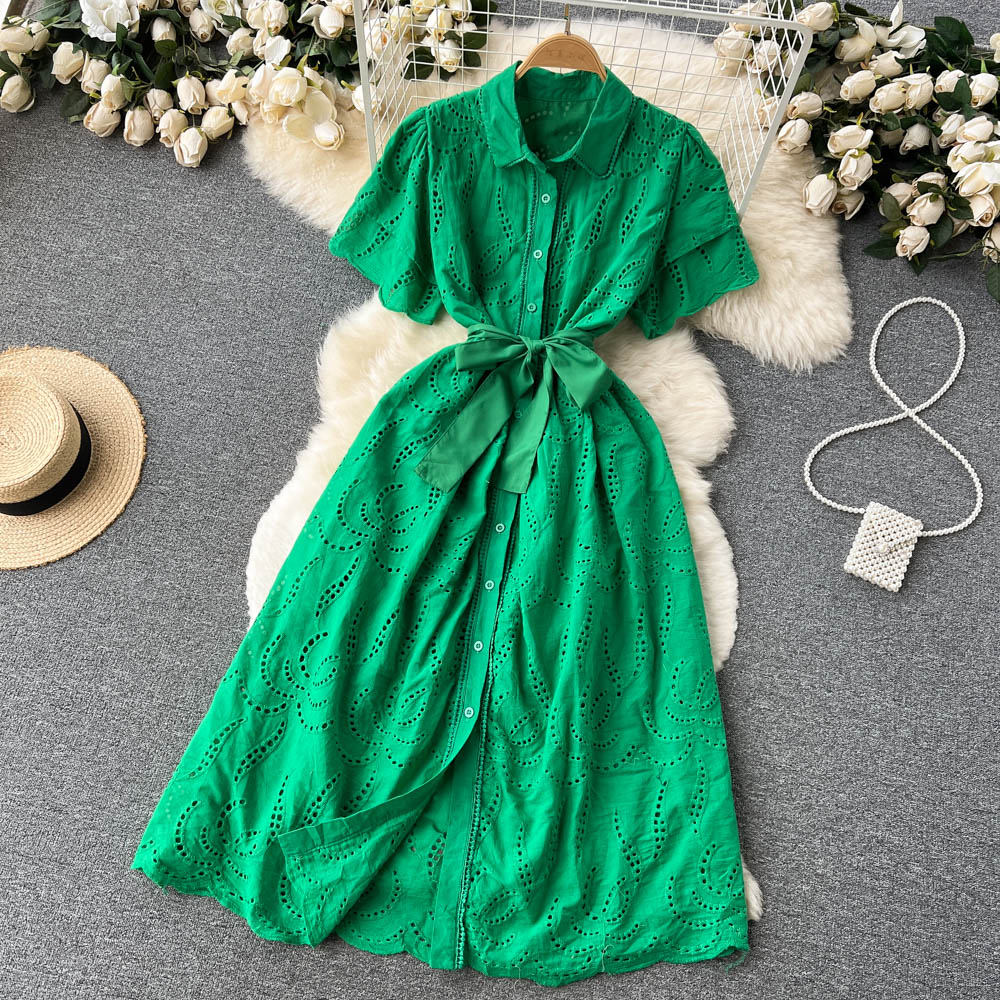 Dieses Hemdkleid aus Baumwolle mit eingeprägtem animalistischem Muster in Grün ist eine stilvolle und ausdrucksstarke Wahl für alle, die ihrem Kleiderschrank ein wenig Farbe verleihen möchten. Der weiche und angenehme Stoff sorgt den ganzen Tag über für Komfort, während das originelle Muster dem Look Exotik und Raffinesse verleiht. Das Hemdkleid eignet sich sowohl für alltägliche Spaziergänge als auch für formellere Anlässe und schafft einen modischen und modernen Look.