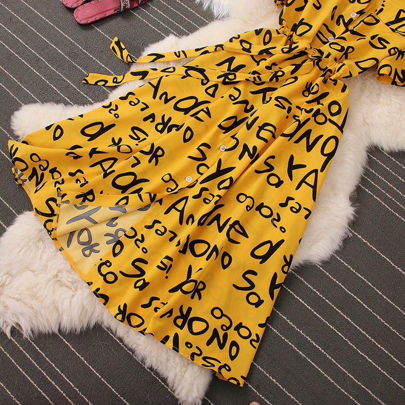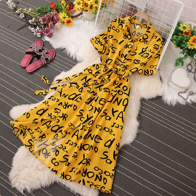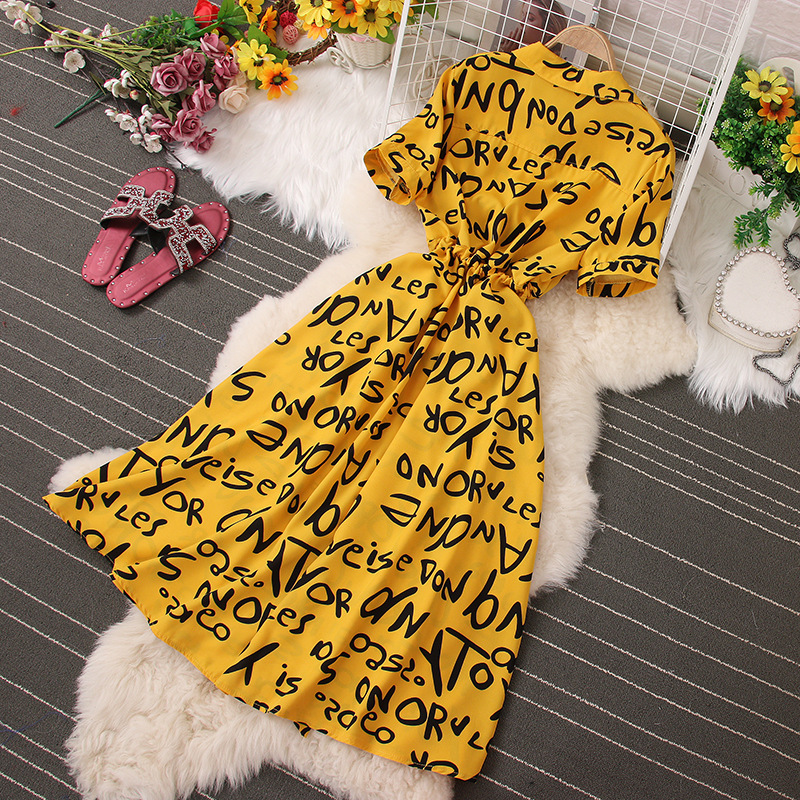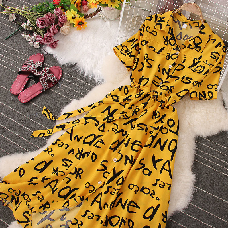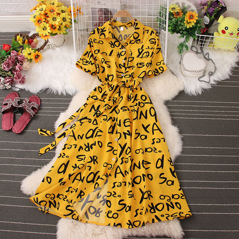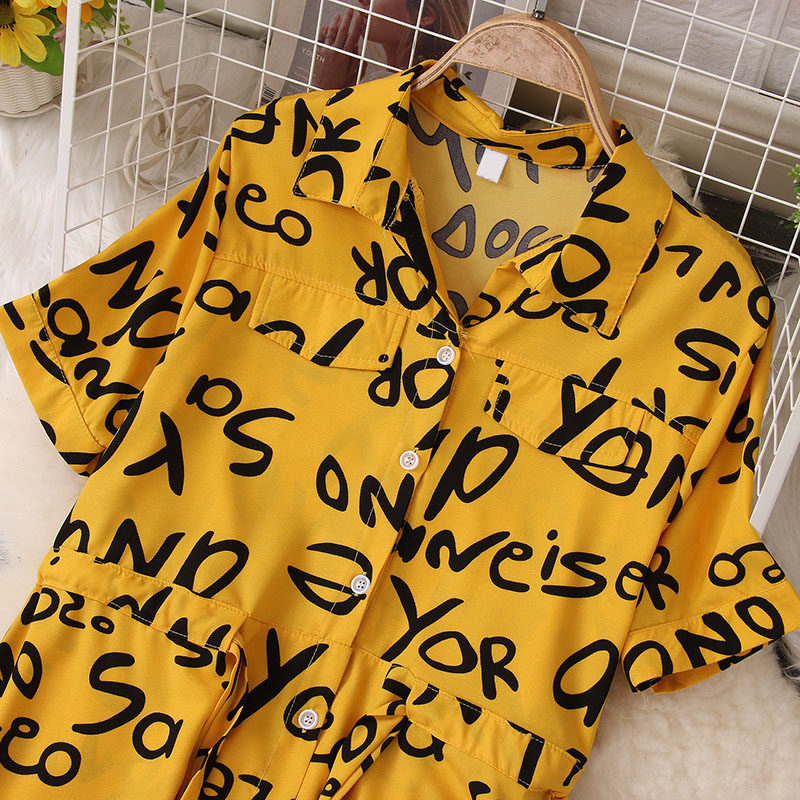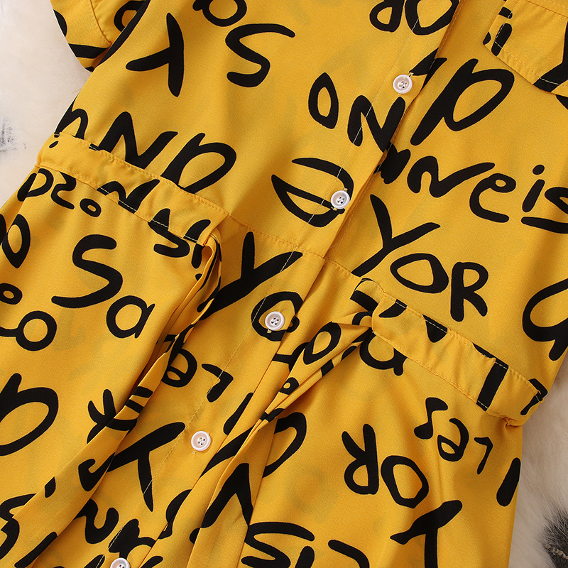 Schreibe die erste Rezension für „Kleid im Hemd-Stil mit kurzen Ärmeln in Gelb mit schwarzem Druck“