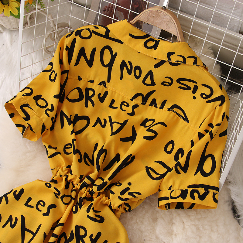 Dieses stilvolle gelbe Hemdblusenkleid mit kurzen Ärmeln und schwarzem Druck ist die perfekte Wahl für warme Tage. Die leuchtende Farbe und das ungewöhnliche Muster schaffen einen auffälligen und unvergesslichen Look. Der leichte Stoff sorgt für Komfort, während der klassische Schnitt mit kurzen Ärmeln Eleganz und Freiheit verleiht. Dieses Kleid ist sowohl für den Alltag als auch für abendliche Spaziergänge ideal und verleiht Ihnen Stil und Selbstvertrauen.