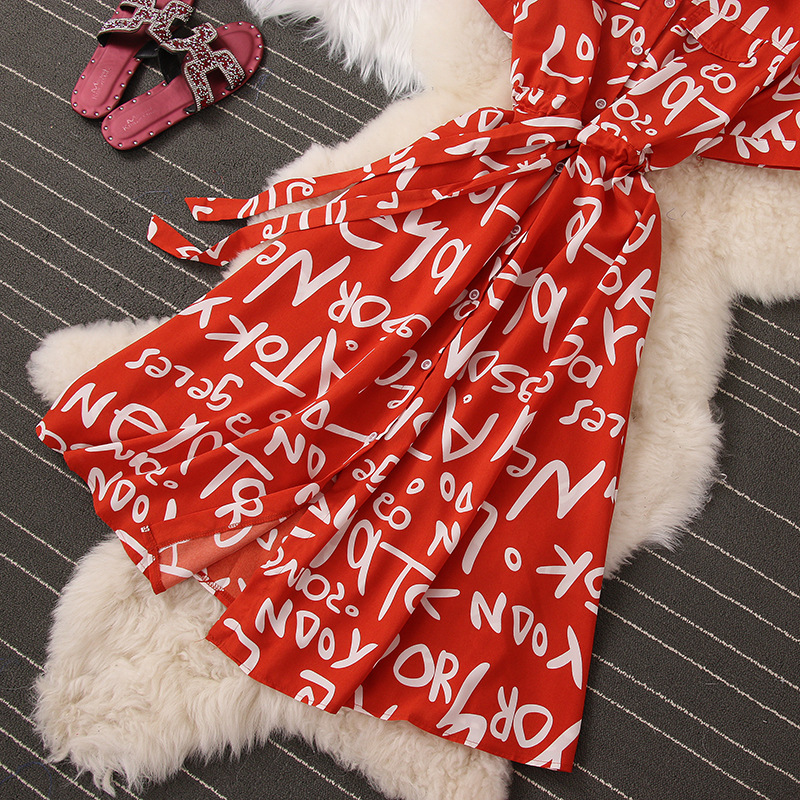 Dieses lebendige rote Hemdblusenkleid mit kurzen Ärmeln und weißem Druck ist die perfekte Wahl für warme Sommertage. Es kombiniert Stil und Komfort und ist aus leichtem Stoff gefertigt, der ideal für warmes Wetter geeignet ist. Der weiße Druck auf dem roten Hintergrund schafft einen frischen und dynamischen Look, während die kurzen Ärmel und der lockere Schnitt Leichtigkeit und Komfort verleihen. Dieses Modell ist eine ausgezeichnete Wahl für den Alltag und eignet sich hervorragend für Spaziergänge und Treffen mit Freunden.