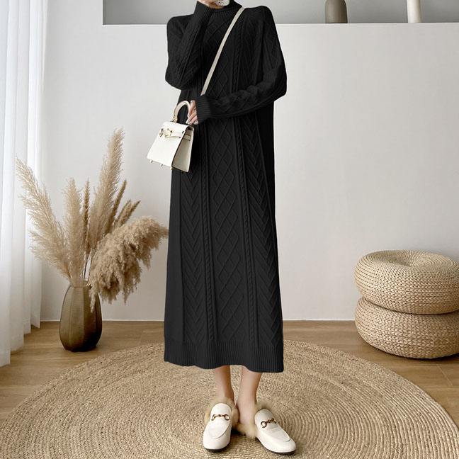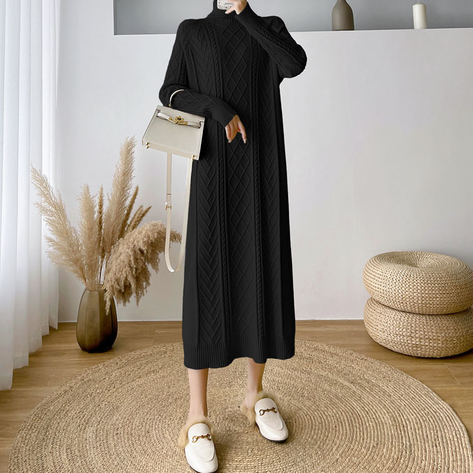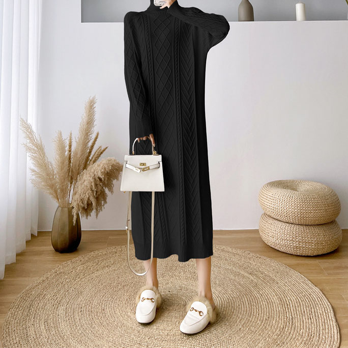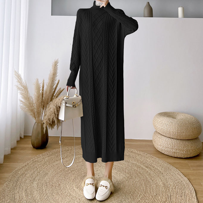 Dieses schwarze Strickkleid in lockerer Passform vereint Komfort und Stil in einem eleganten Design. Der weiche, dehnbare Strickstoff sorgt für ein angenehmes Tragegefühl und passt sich sanft der Körperform an, ohne einzuengen. Der lockere Schnitt bietet viel Bewegungsfreiheit und trägt zu einem entspannten, modernen Look bei. Dieses Kleid eignet sich perfekt für den Alltag, kann aber auch mit den richtigen Accessoires für besondere Anlässe aufgepeppt werden. Ein vielseitiges und zeitloses Kleidungsstück für jede Garderobe.