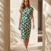 Dieses elegante Etuikleid ist aus weiß-grüner Spitze gefertigt, die dem Kleid eine frische und zugleich stilvolle Ausstrahlung verleiht. Das filigrane Spitzenmuster in Weiß und Grün schafft einen harmonischen Kontrast, der das Kleid zum Blickfang macht. Der figurbetonte Schnitt betont die Silhouette und verleiht dem Outfit eine feminine und raffinierte Note. Perfekt für besondere Anlässe oder elegante Abendveranstaltungen, bietet das Kleid dank hochwertiger Materialien hohen Tragekomfort und eine perfekte Passform.