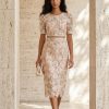 Körperbetontes Kleid aus Blumen-Spitze in Nude-Tönen