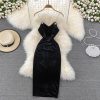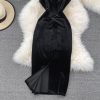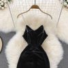 Das Cocktailkleid aus schwarzem Samt mit Steindekor auf den Trägern ist ein wahres Kunstwerk, das Eleganz und Raffinesse perfekt vereint. Die samtige Textur verleiht dem Kleid einen luxuriösen Look, während die mit Steinen besetzten Träger einen Hauch von Glanz und Originalität hinzufügen. Dieses Kleid eignet sich hervorragend für abendliche Anlässe, Feiern und festliche Veranstaltungen und lässt Sie unwiderstehlich und ansprechend wirken. Damit ziehen Sie alle Blicke auf sich und hinterlassen einen bleibenden Eindruck.