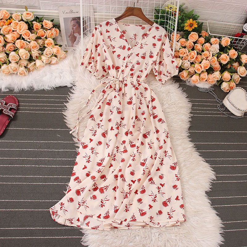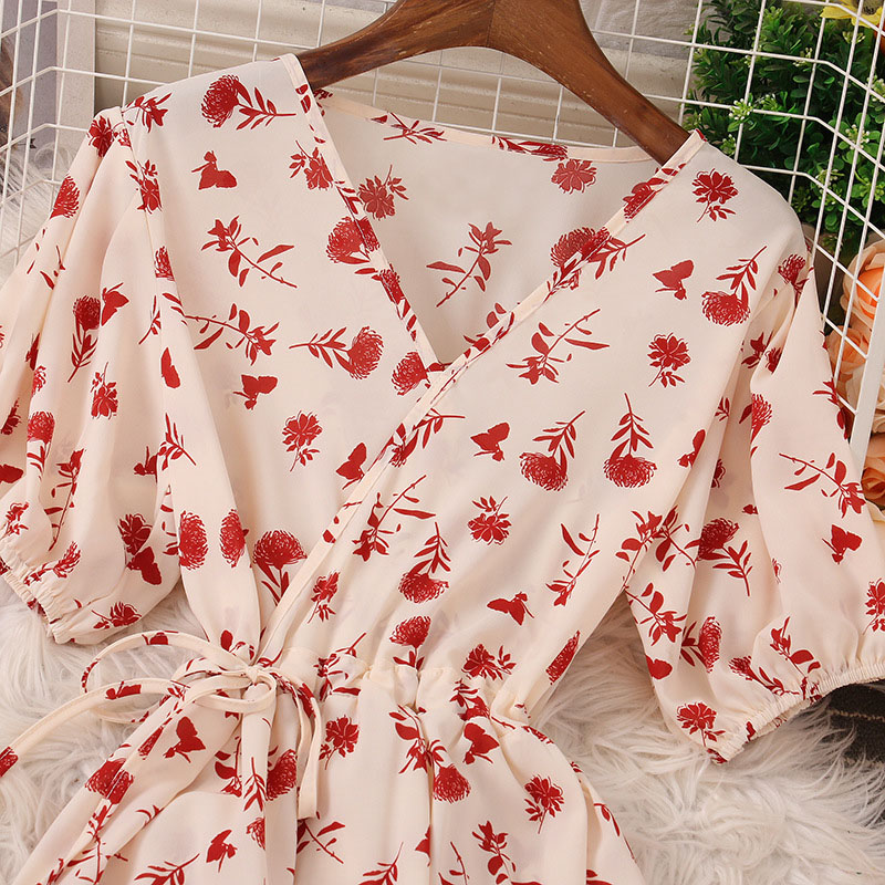 Sommerkleid aus leichtem Stoff mit rotem Blumenmuster.