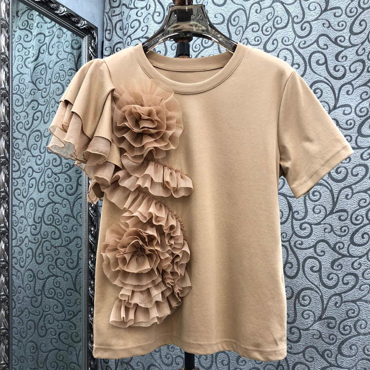 Dieses beige asymmetrische T-Shirt überzeugt durch seinen modernen Schnitt, der für eine einzigartige Silhouette sorgt. Der asymmetrische Designakzent verleiht dem T-Shirt eine stilvolle und zeitgemäße Note. Der weiche Stoff sorgt für angenehmen Tragekomfort und lässt sich perfekt in lässige oder elegante Outfits integrieren. Ideal für einen modischen Look, lässt sich dieses T-Shirt problemlos mit Jeans, Röcken oder Shorts kombinieren.