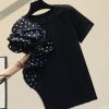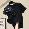 Dieses modische schwarze T-Shirt besticht durch einen asymmetrischen Schnitt und verspielte Rüschen mit einem klassischen Punkte-Muster. Das auffällige Design verleiht dem T-Shirt einen modernen und gleichzeitig femininen Look. Der weiche Stoff sorgt für hohen Tragekomfort, während die Rüschen und das Polka-Dot-Muster dem Shirt eine besondere Note verleihen. Ideal für einen lässigen, aber stylischen Look, lässt sich dieses T-Shirt perfekt mit Jeans, Röcken oder Shorts kombinieren.