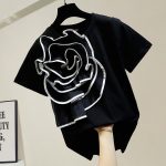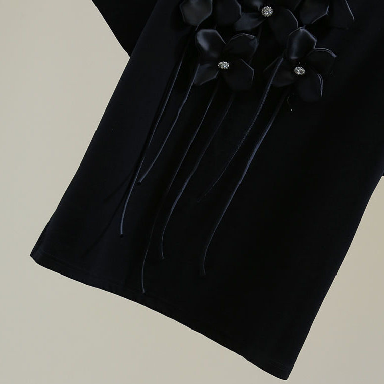 Dieses schwarze T-Shirt ist das perfekte Basic-Element in jedem Kleiderschrank und erhält durch den eleganten Blumenapplikationsschmuck eine besondere Note. Zarte, kunstvoll gestickte oder applizierte Blumen verleihen dem Kleidungsstück einen raffinierten und femininen Touch, der dem Alltagstil Frische und Lebendigkeit verleiht.