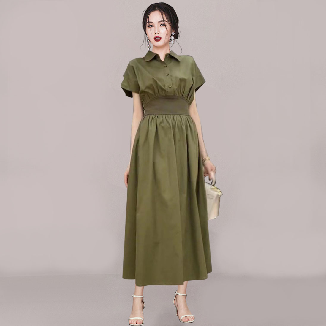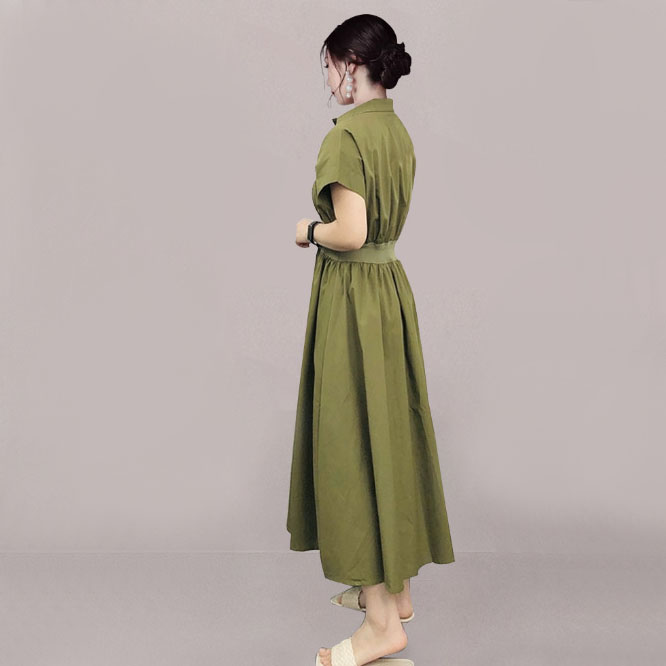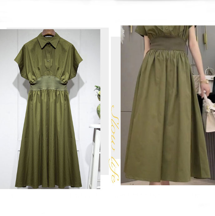 Dieses elegante Midi-Kleid aus hochwertiger Baumwolle ist die perfekte Ergänzung für Ihre Garderobe. Die edle Farbe Khaki verleiht dem Look Stil und Eleganz und unterstreicht die natürliche Schönheit des Stoffes. Ein besonderer Akzent liegt auf dem Bund, wo sich ein Einsatz aus Strickstoff befindet, der dem Kleid zusätzliche Raffinesse und Komfort verleiht. Dieses Kleid verbindet Praktikabilität und Anmut und ist ideal sowohl für den Alltag als auch für besondere Anlässe geeignet.
