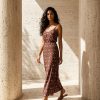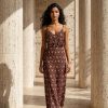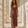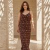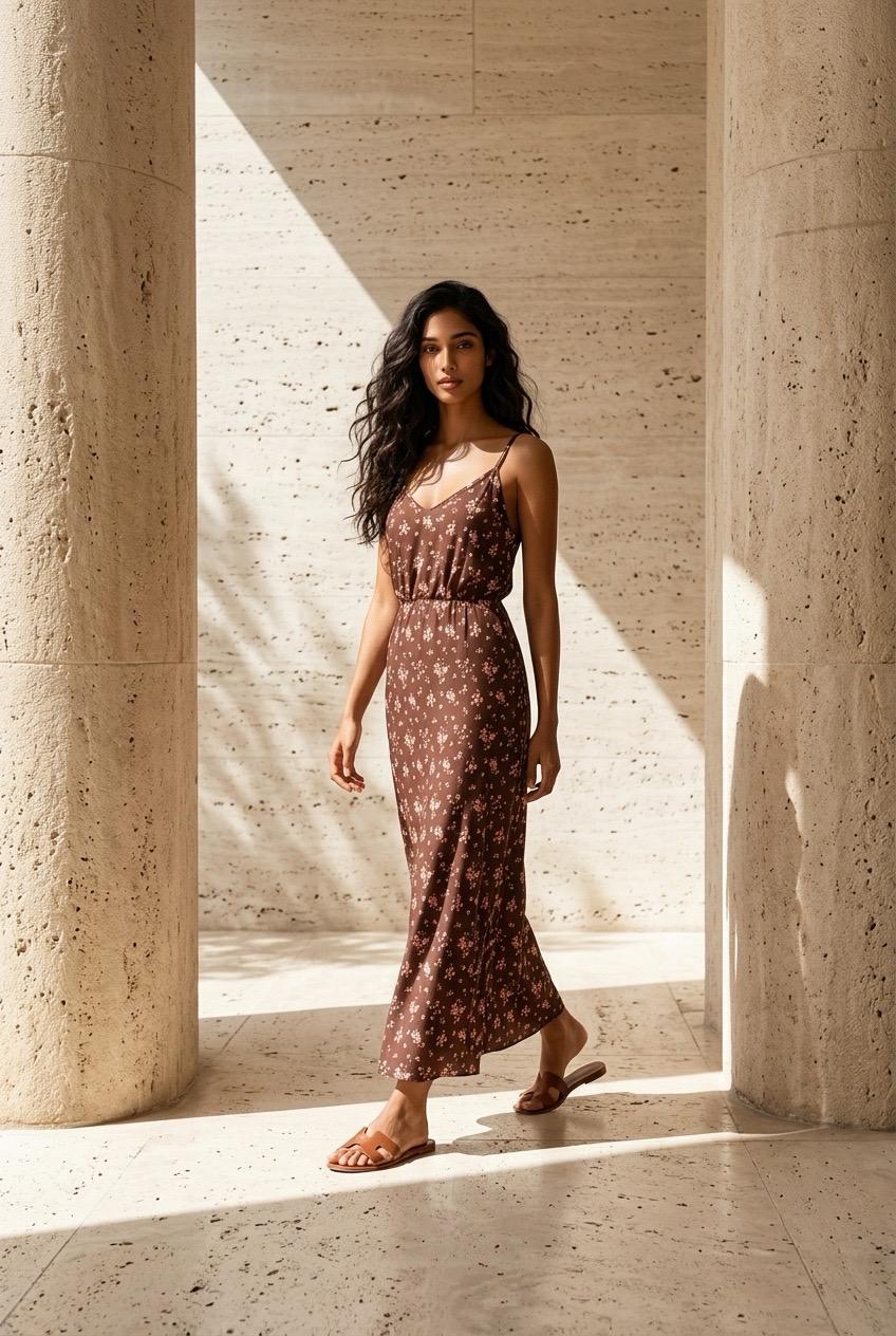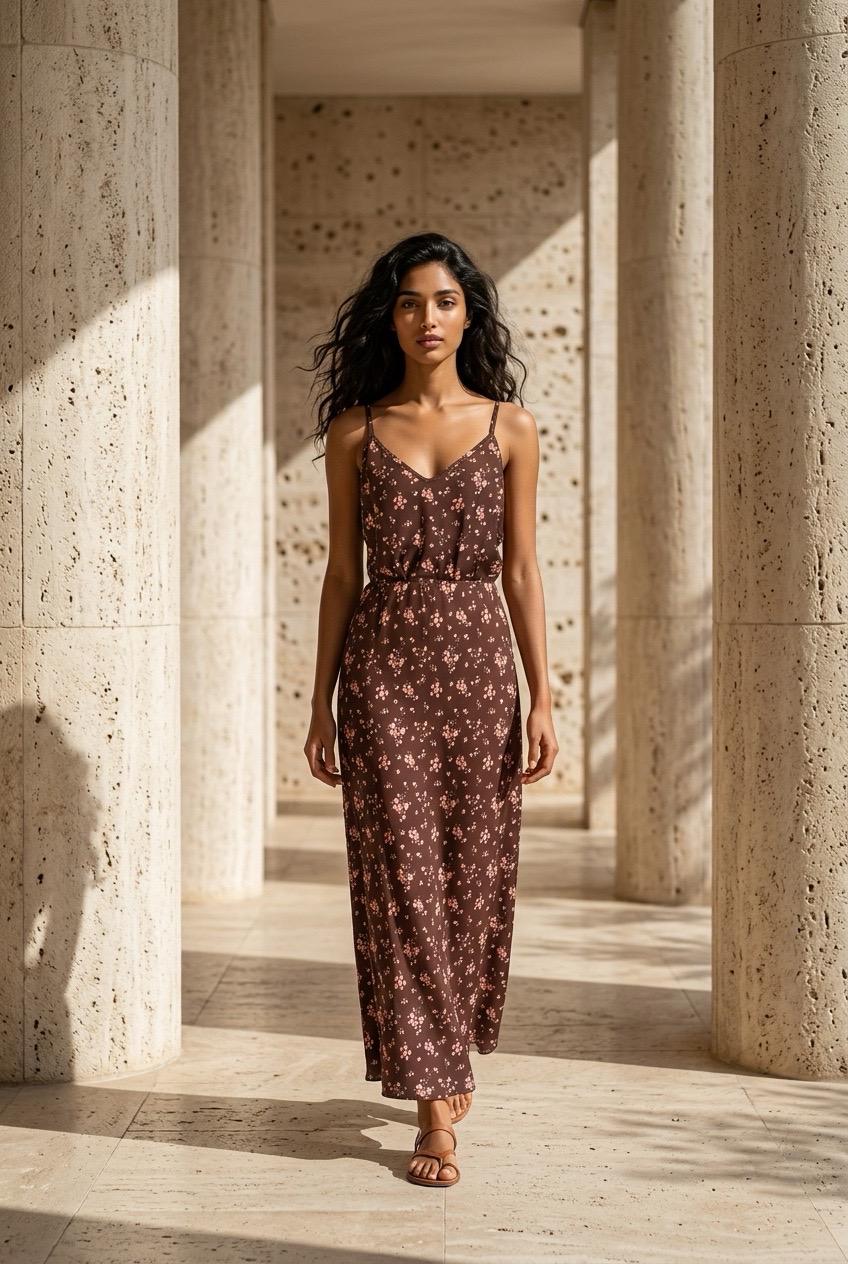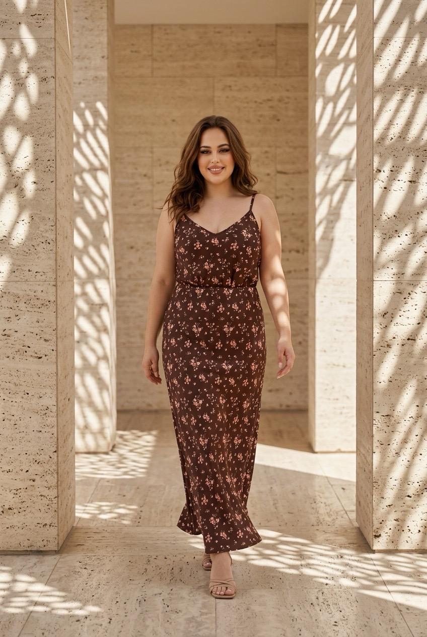 Stilvolles Set aus Rock und Top aus Viskose in schokoladenbrauner Farbe mit floralem Print. Leicht, feminin und angenehm zu tragen – perfekt für sommerliche und elegante Looks.